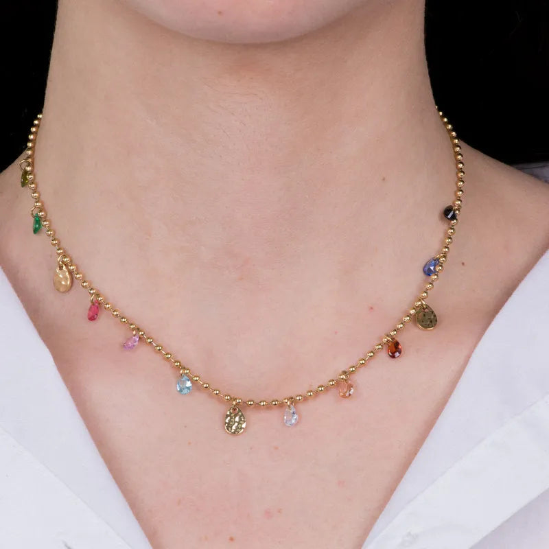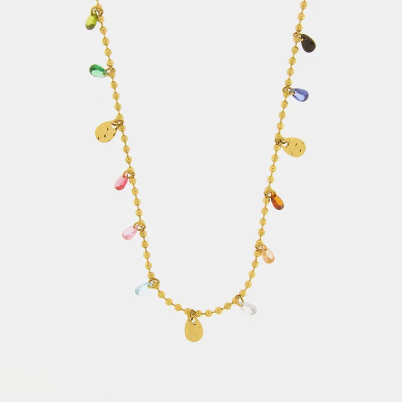 Collana in Acciaio con gocce di cristalli multicolore pendenti