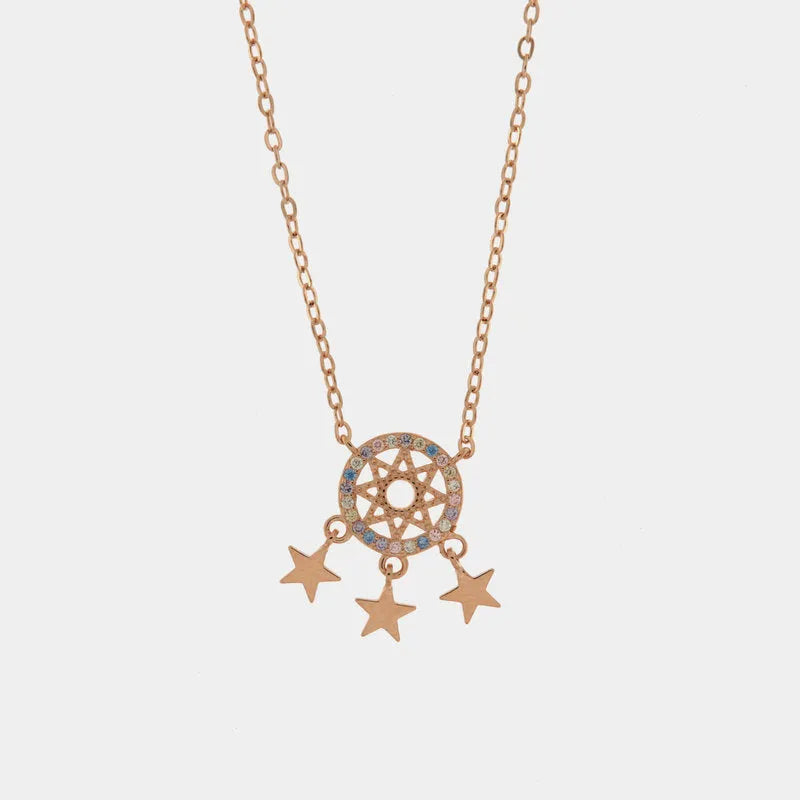Collana in Argento 925 acchiappasogni con giro di zirconi multicolor e stelline pendenti