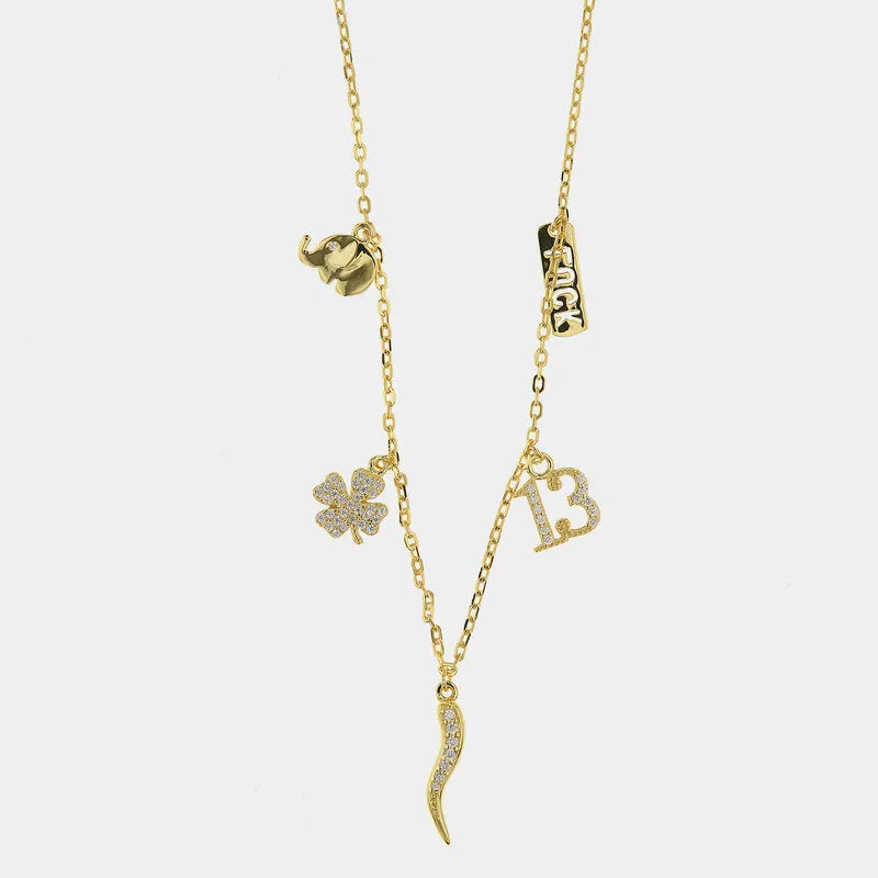 Collana in Argento 925 con amuleti pendenti e zirconi bianchi