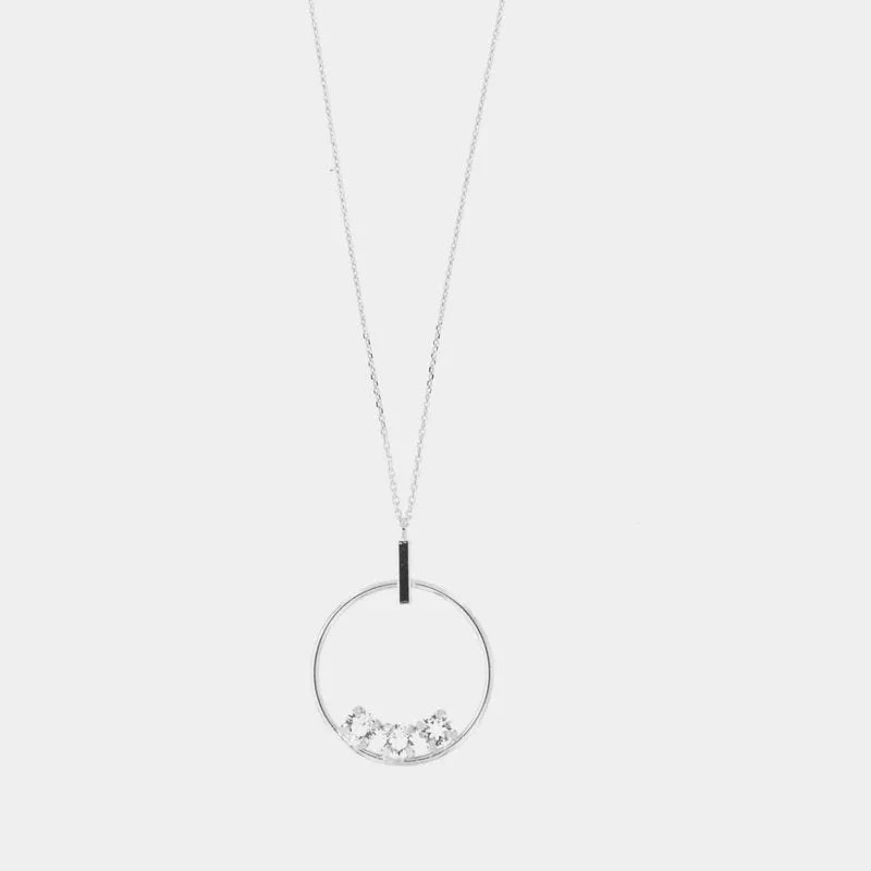 Collana in Argento 925 con cerchio pendente, impreziosito da trio di cristalli bianchi