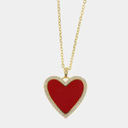 Collana in Argento 925 con cuore impreziosito da zirconi bianchi e smalto rosso