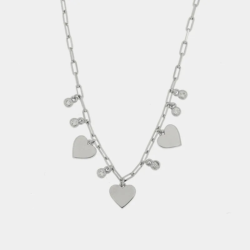 Collana in Argento 925 con cuori  e punti luce pendenti