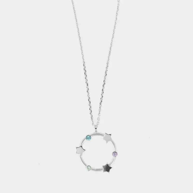 925 Silver Necklace with a pendant featuring an alternating circle of stars and multicolored crystals.