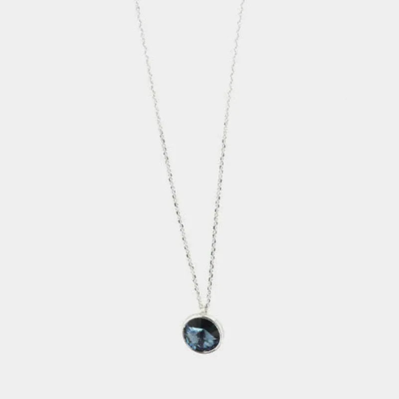 Collana in Argento 925 con punto luce pendente impreziosito da cristalli blu denim