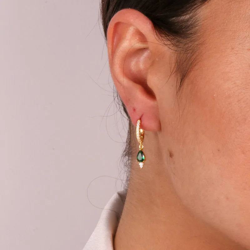 Orecchini in Argento 925 a cerchietto impreziosito da zirconi bianchi e zircone verde smeraldo pendente