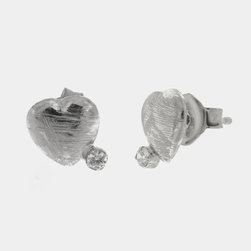 Orecchini in Argento 925 a lobo con cuore graffiato e punto luce