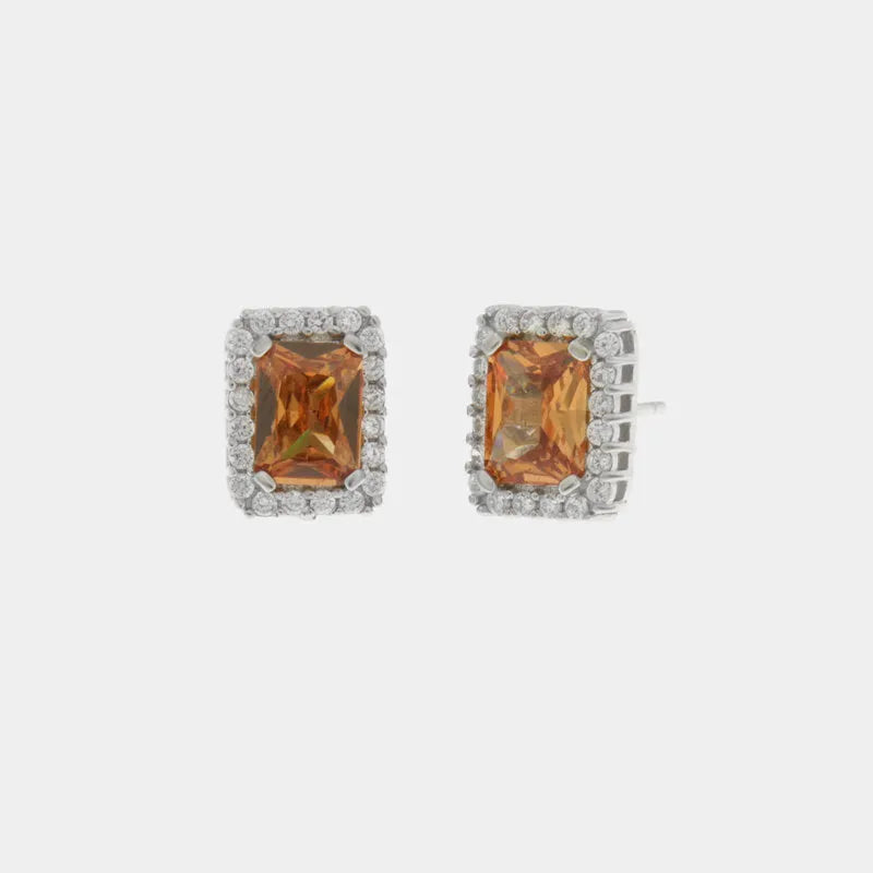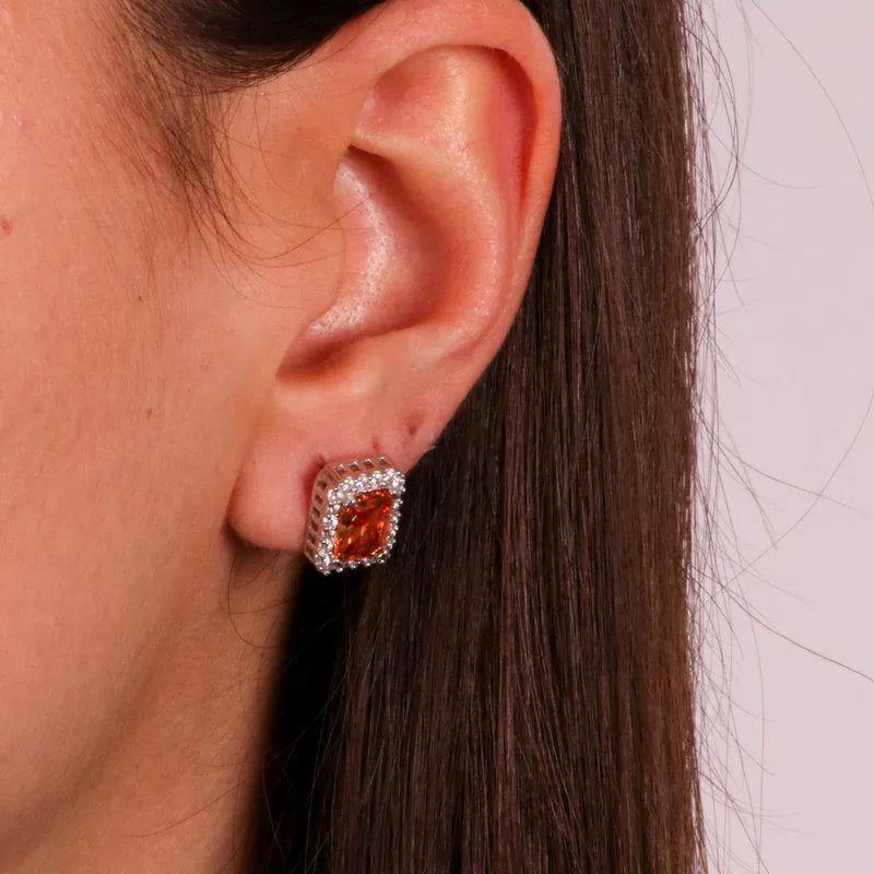 Orecchini in Argento 925 a lobo con zircone centrale champagne e bianchi
