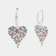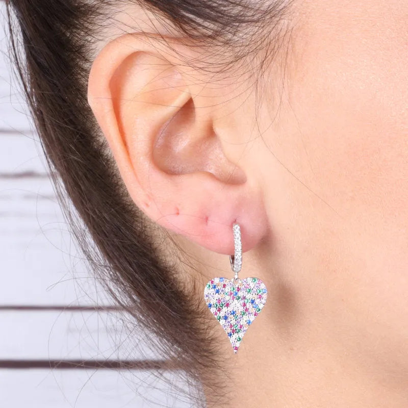 Orecchini in Argento 925 cerchio con zirconi bianchi e cuore multicolor pendente