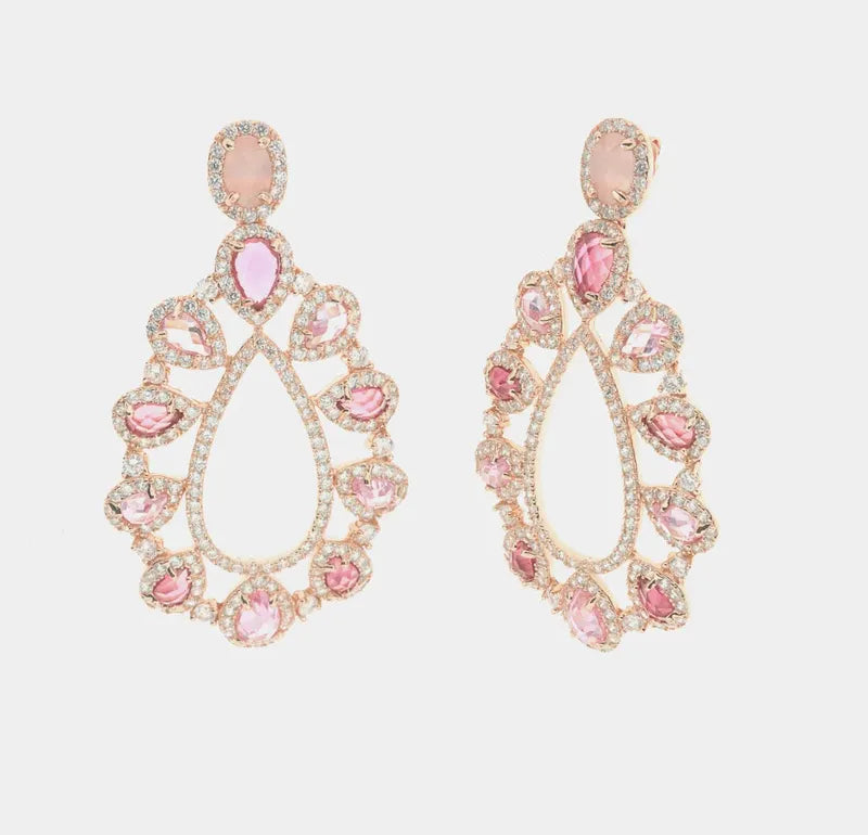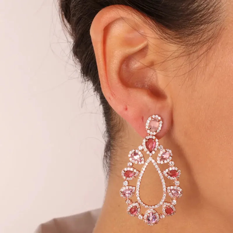 Orecchini in Argento 925 con pendente a forma di goccia impreziositi da zirconi bianchi e pietre colorate