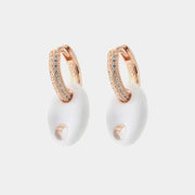 Orecchini in Argento 925 con pendente a forma di maglia marina smaltata bianca con zirconi bianchi