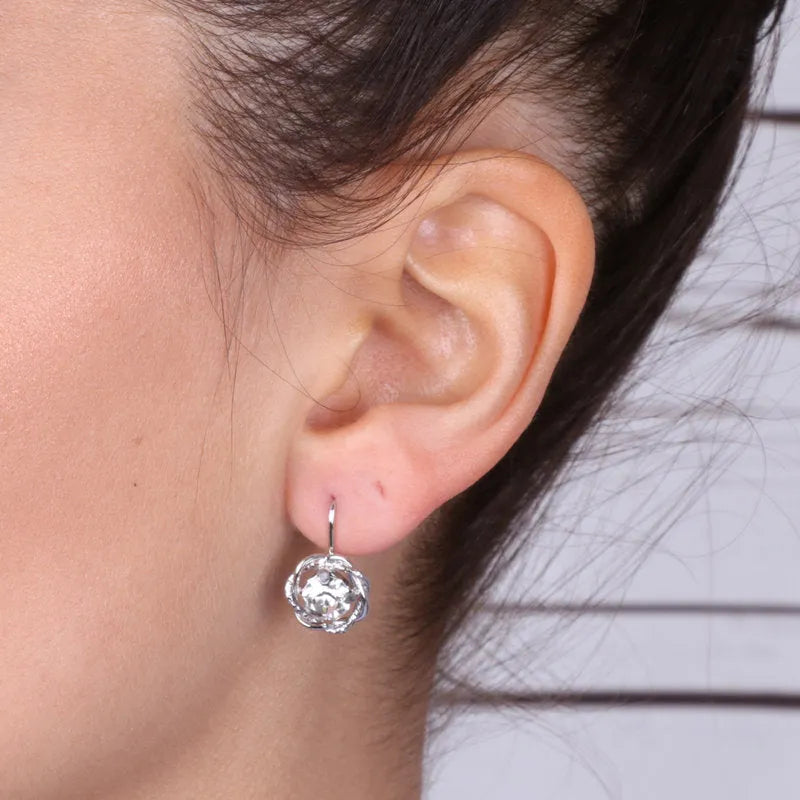 Orecchini in Argento 925 nodo con cristallo bianco centrale ed aggancio a monachina