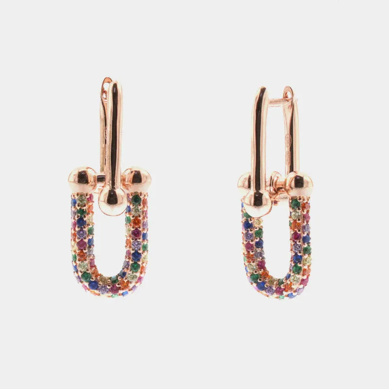 Orecchini in Argento 925 ovali impreziositi da zirconi multicolor