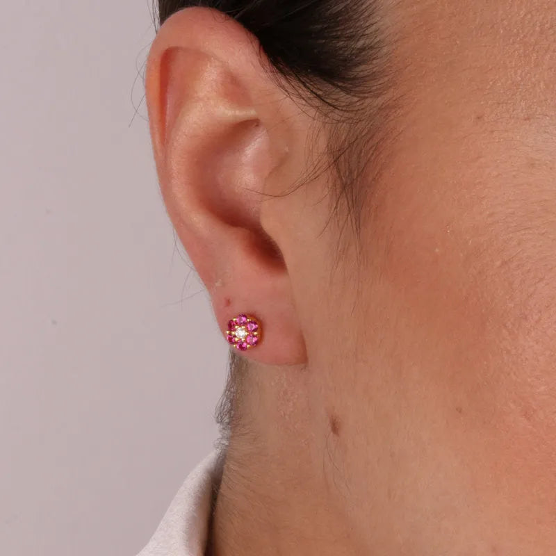 Orecchini in Argento 925 punti luce a fiore rossi a lobo