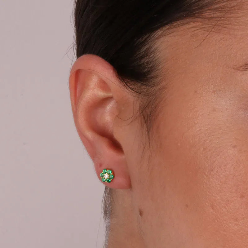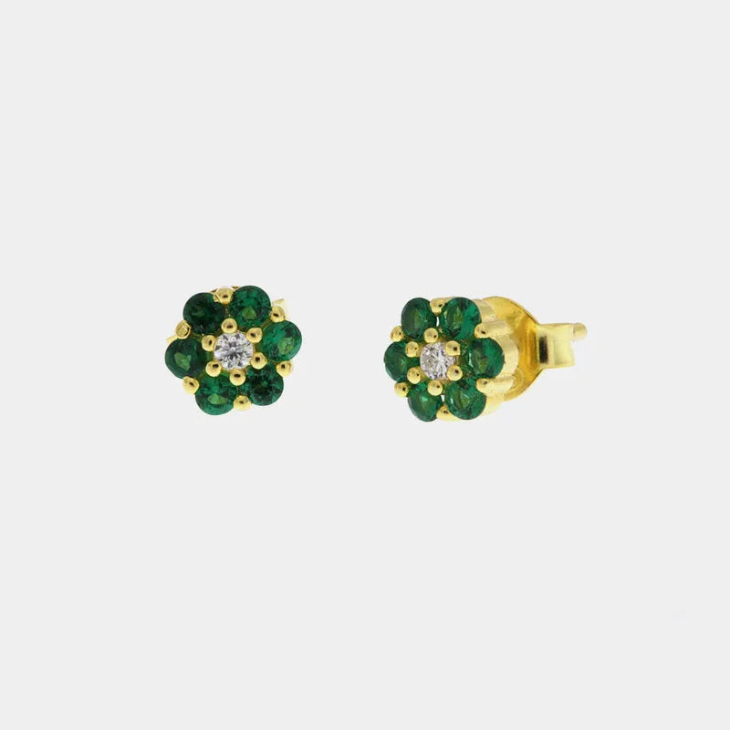 Orecchini in Argento 925 punti luce a fiore verdi a lobo
