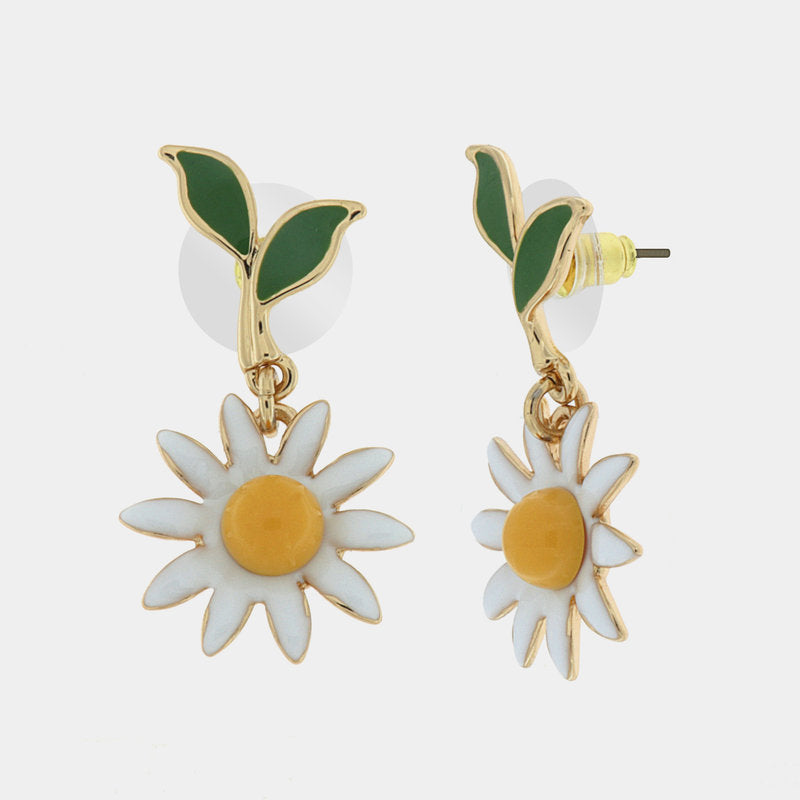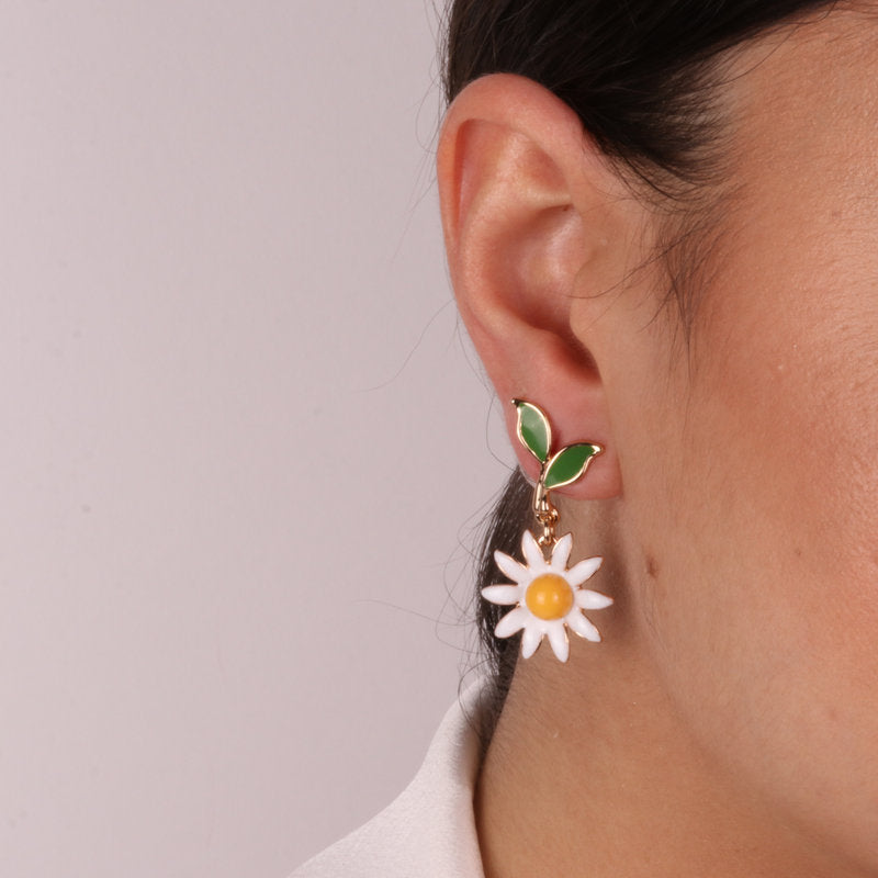 Orecchini in Metallo con pendente a forma di margherita in smalto colorato