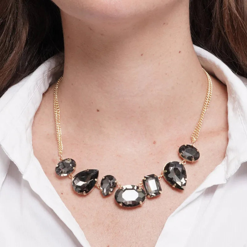 Collana in Metallo cristalli neri