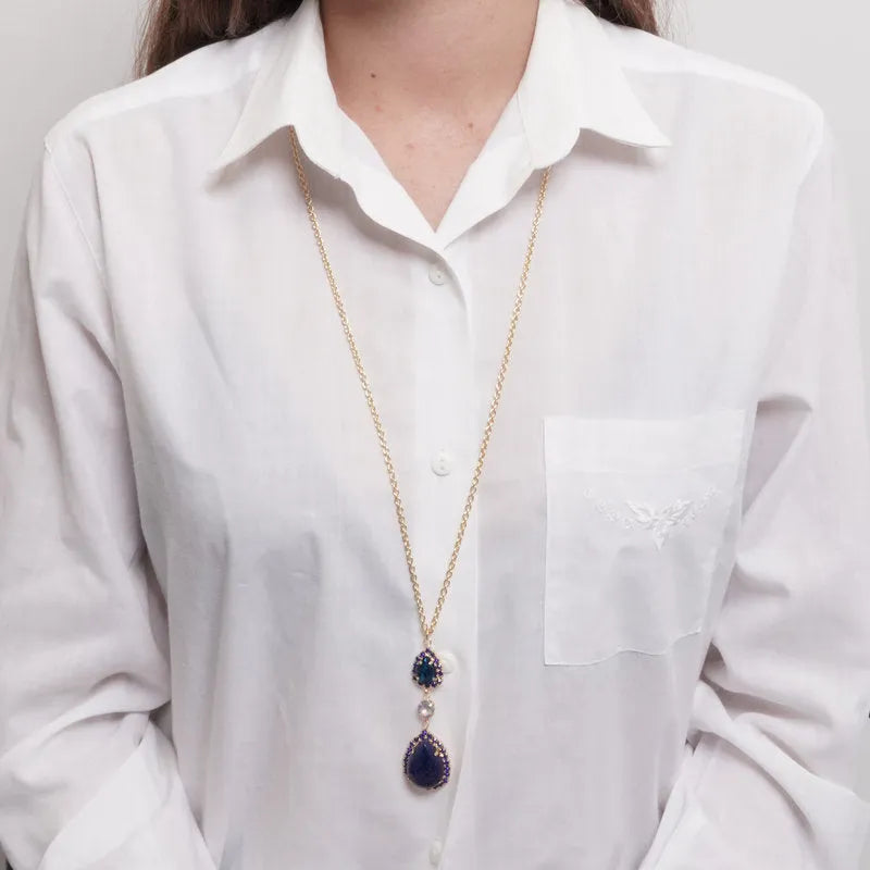 Collana in Metallo goccia blu