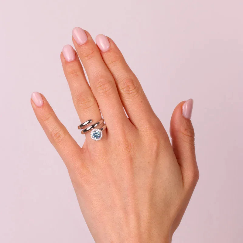Anello in Argento 925 a forma di goccia con zircone centrale azzurro