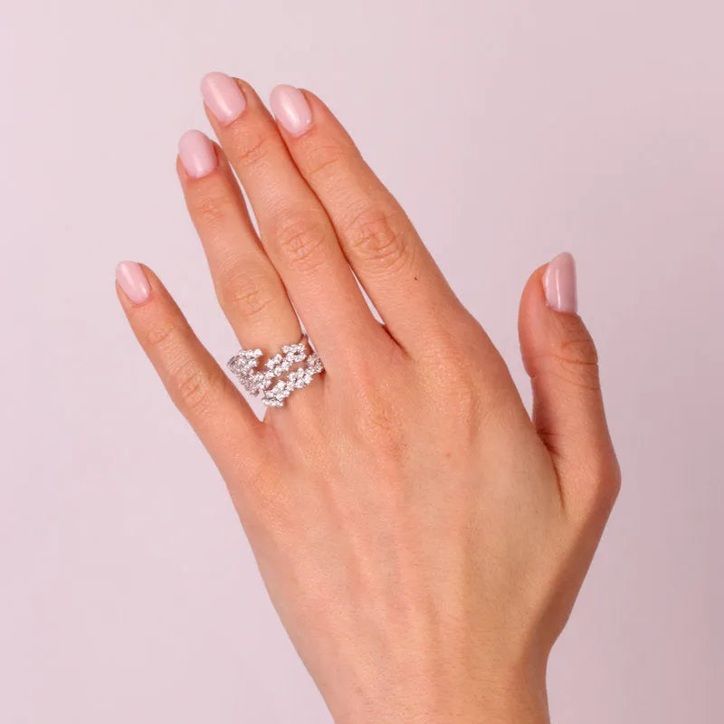 Anello in Argento 925 con struttura a forma di fiore e zirconi bianchi