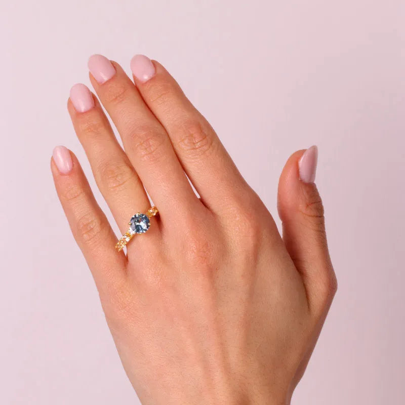 Anello in Argento 925 con zircone azzurro centrale e rosa