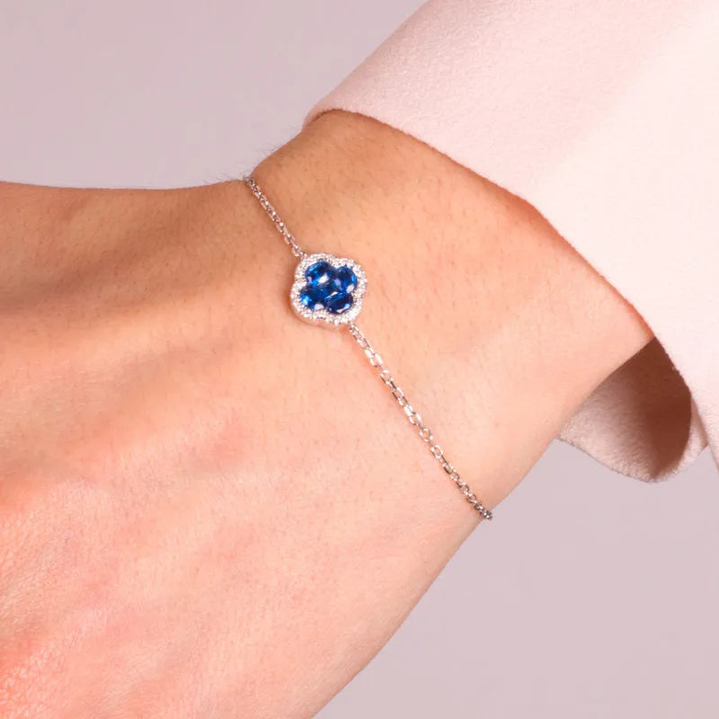 Bracciale in Argento 925 a forma di fiore e zirconi blu