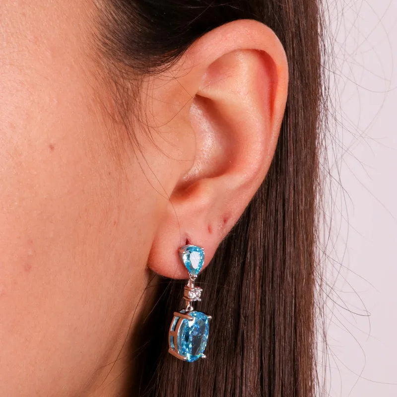 Orecchini in Argento 925 con zirconi celesti pendenti