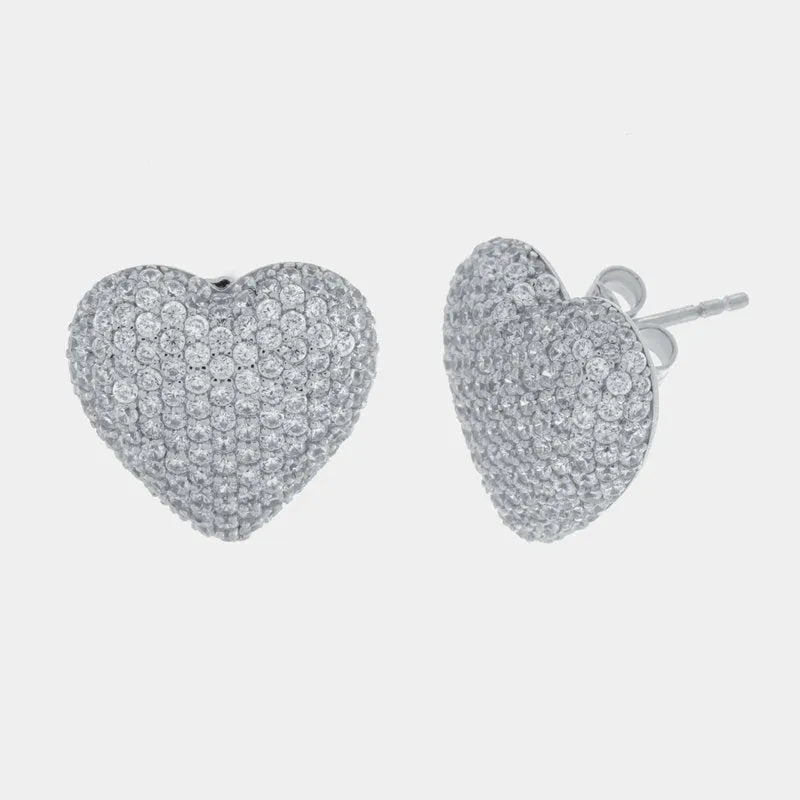 Orecchini in Argento 925 cuore bombato con zirconi