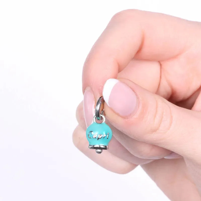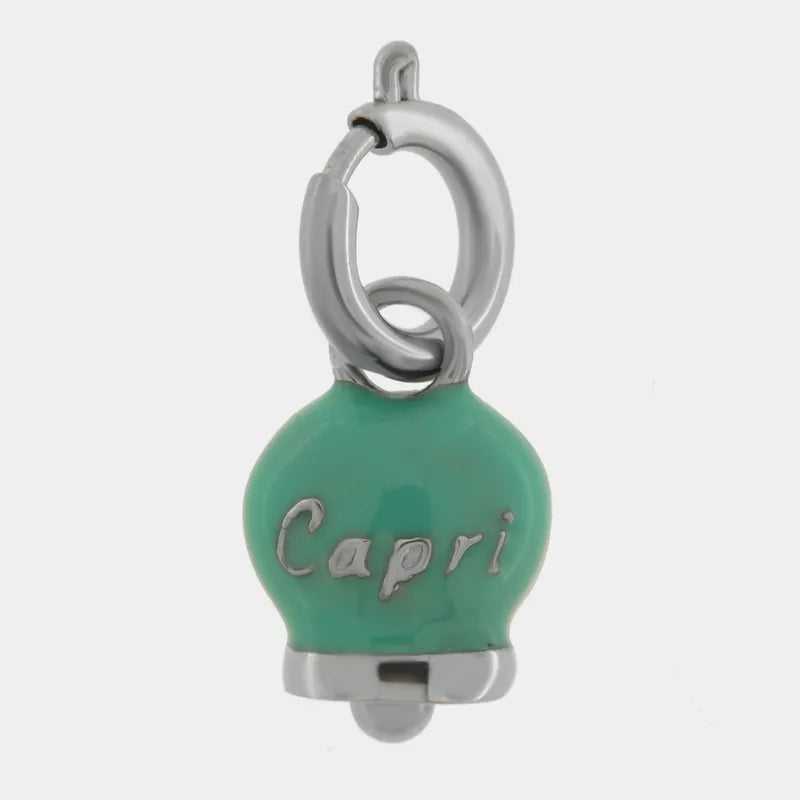 Ciondolo in Acciaio campanella verde con scritta Capri