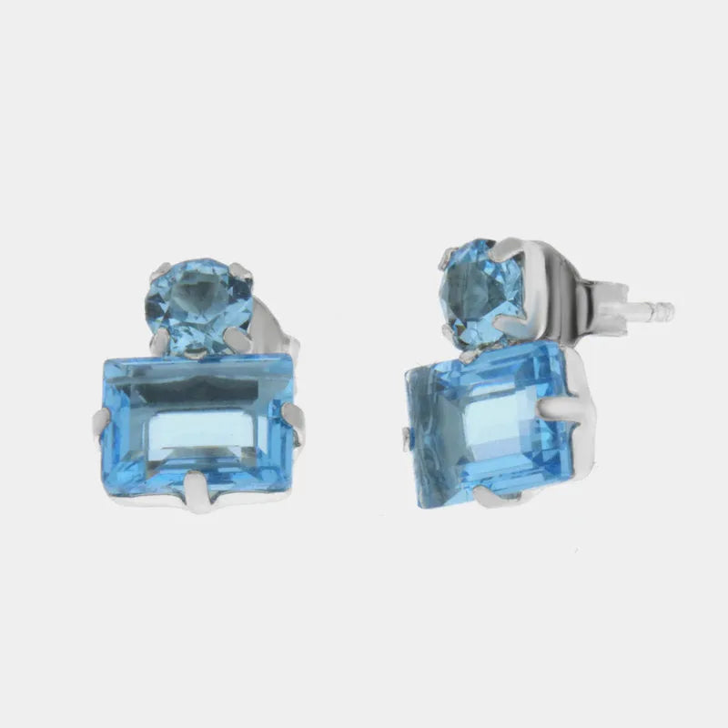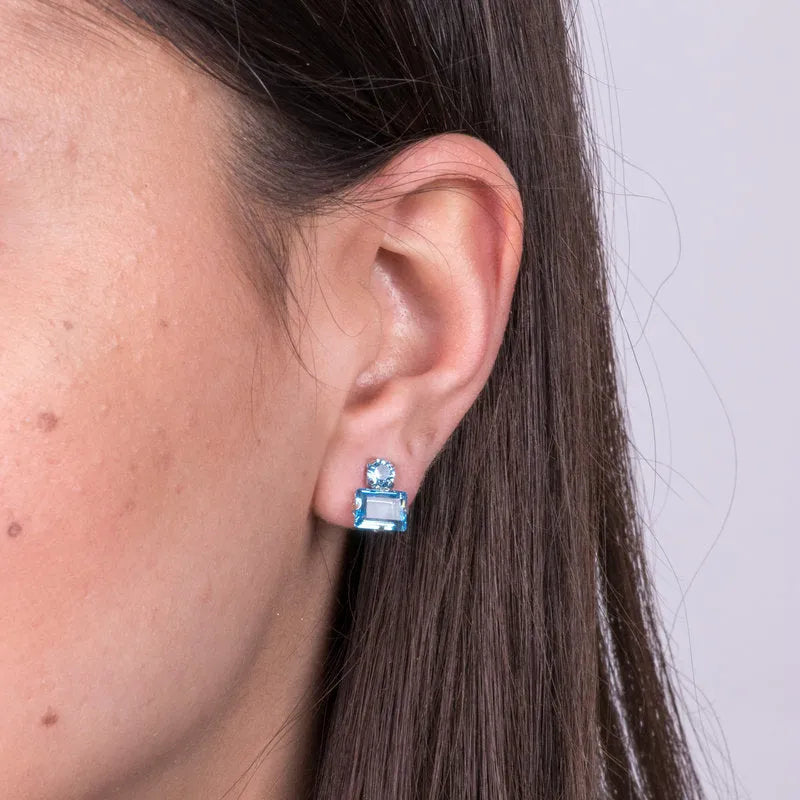 Orecchini in Argento 925 con cristalli rettangolari azzurri
