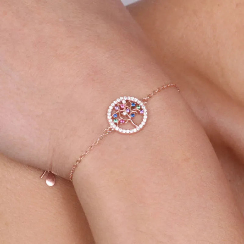 Bracciale in Argento 925 con albero della vita e zirconi multicolor