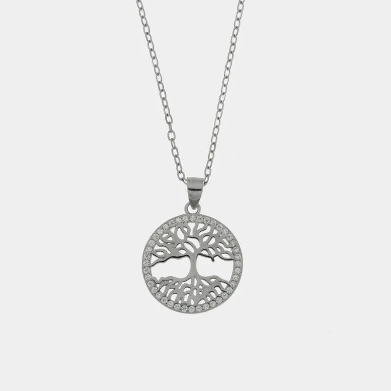 Collana in Argento 925 con albero della vita e zirconi bianchi
