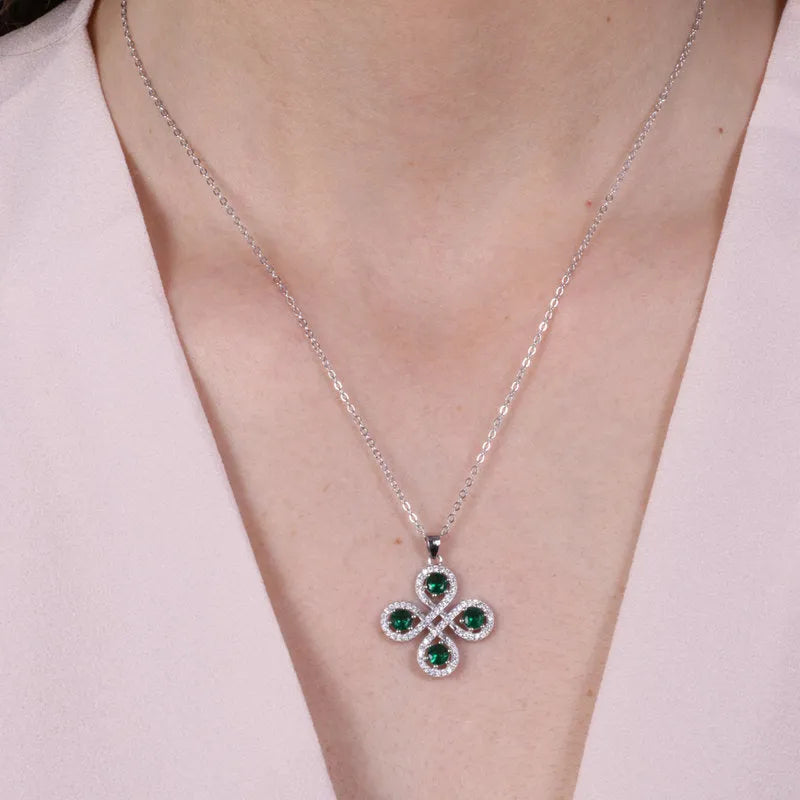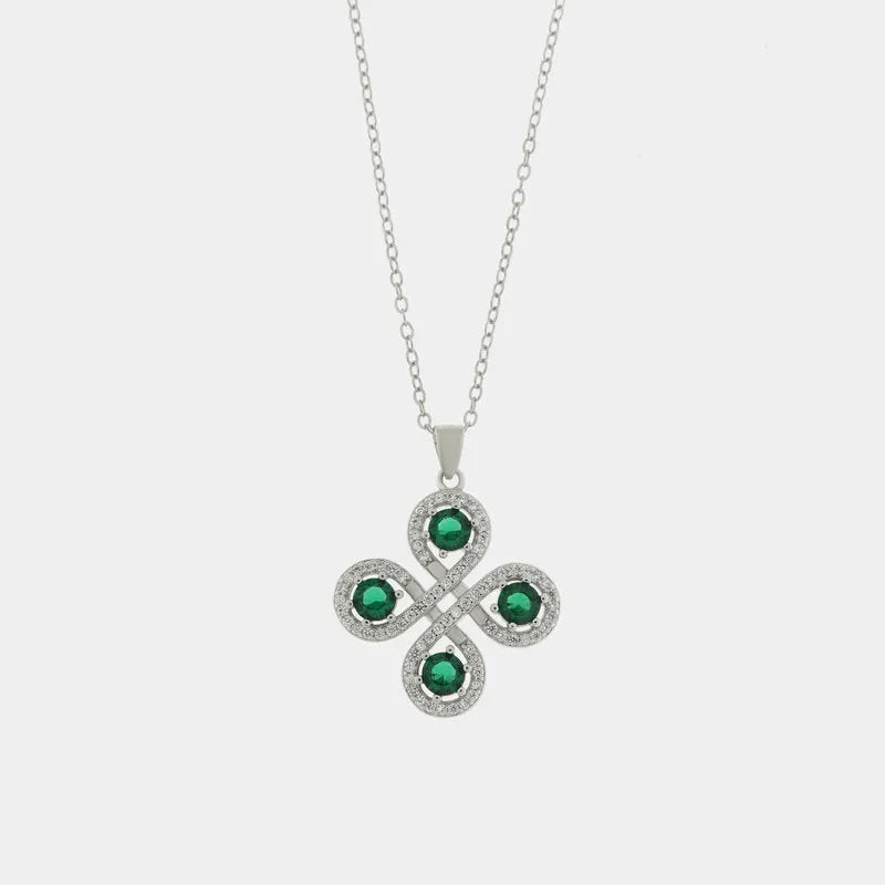 Collana in Argento 925 con fiore impreziosito da zirconi verdi