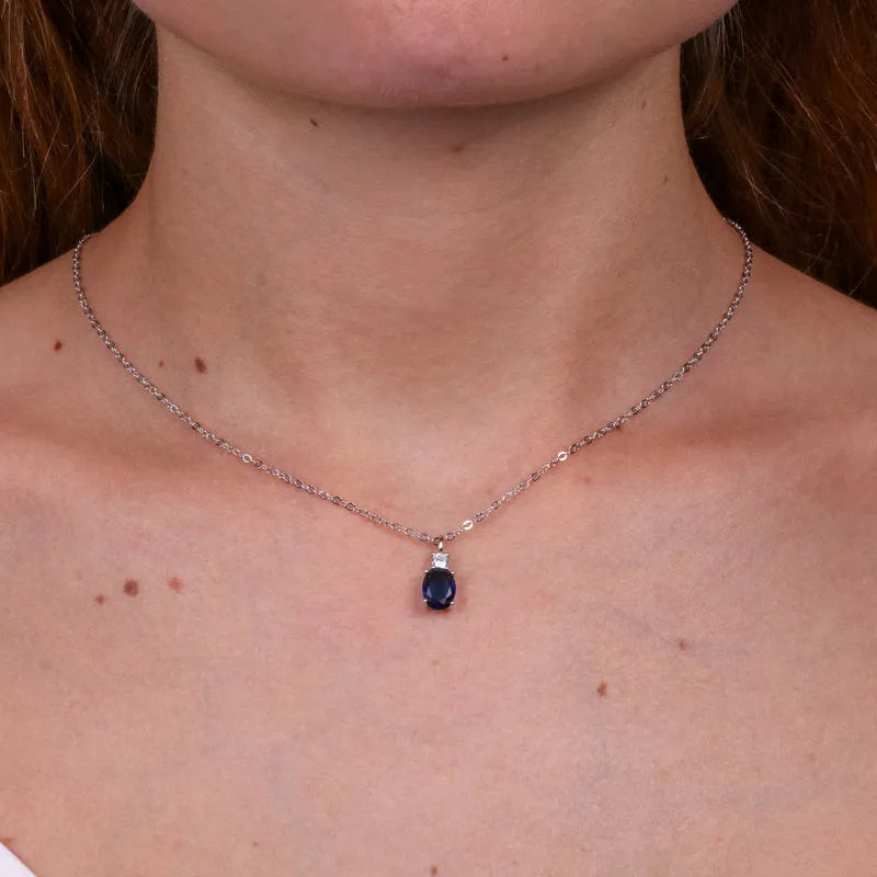 Collana in Argento 925 con cristallo ovale blu e zircone