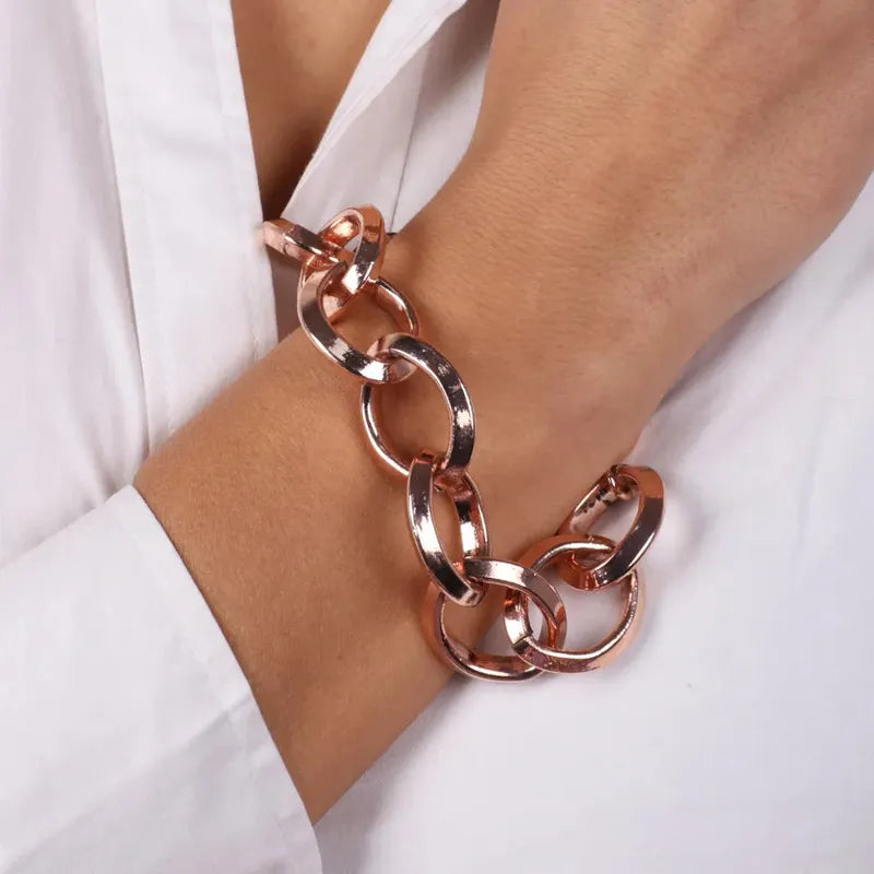 Brazalete de Metal con cadena de eslabones anchos y brillantes
