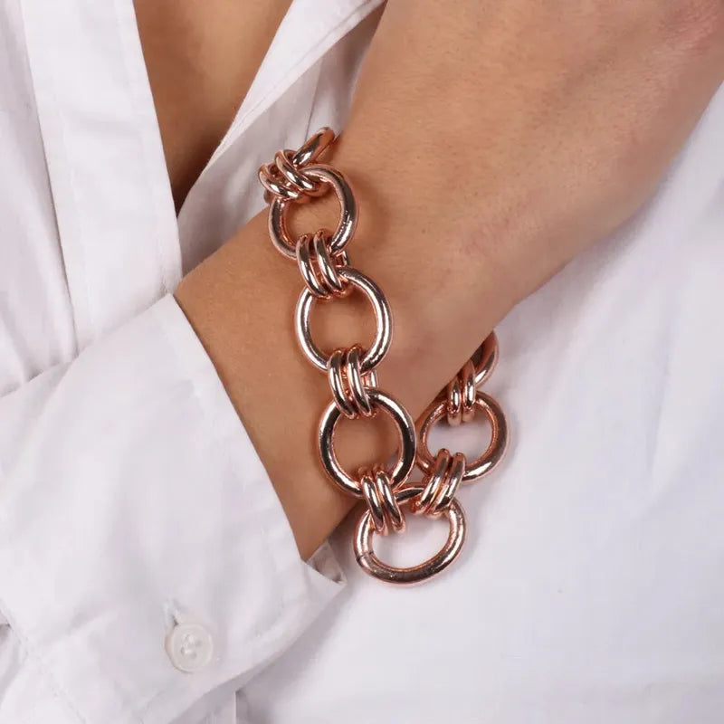 Brazalete de Metal con cadena de eslabones ovalados brillantes