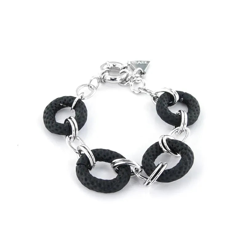 Bracciale in Metallo a catena con elementi smaltati in gomma nera