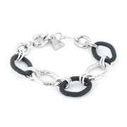 Bracciale in Metallo a catena lavorata, con elementi smaltati in gomma nera