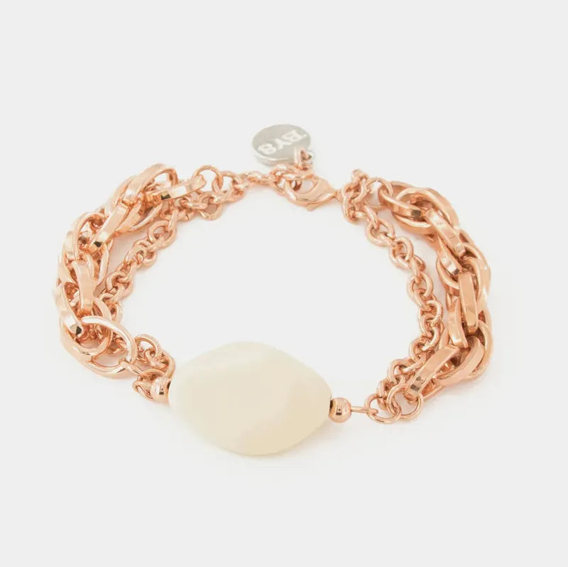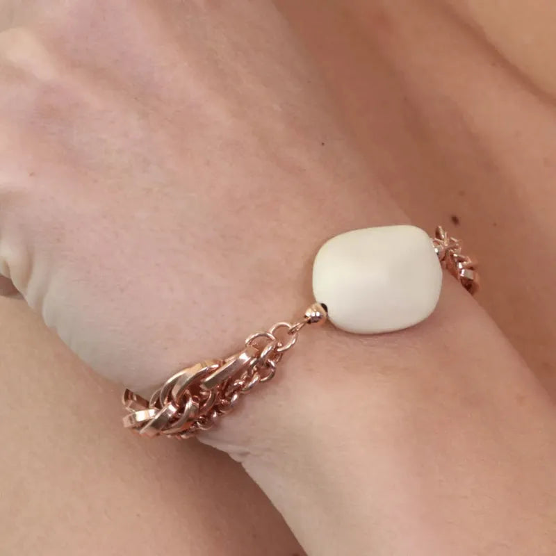 Bracciale in Metallo a catena multifilo, con elemento centrale effetto pietra dura bianca
