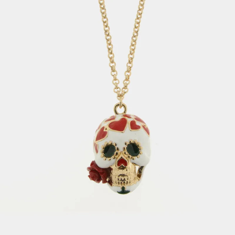 Collana in Metallo con capuzzella bianca impreziosita da cuori rossi