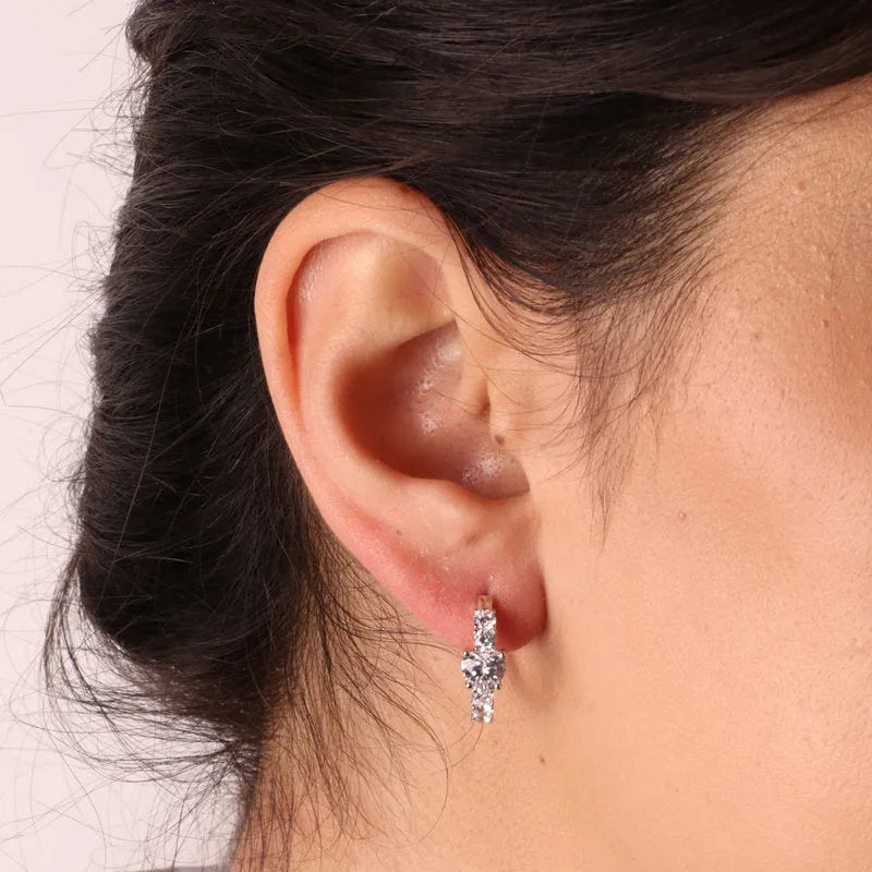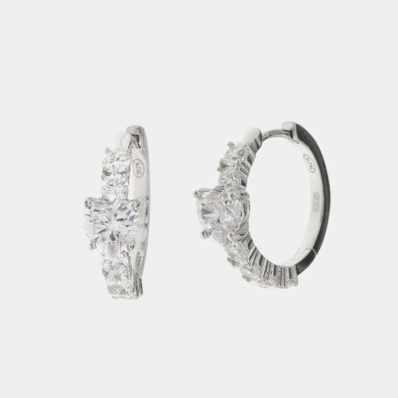 Orecchini in Argento 925 cerchietti con chiusura a scatto impreziositi da zirconi
