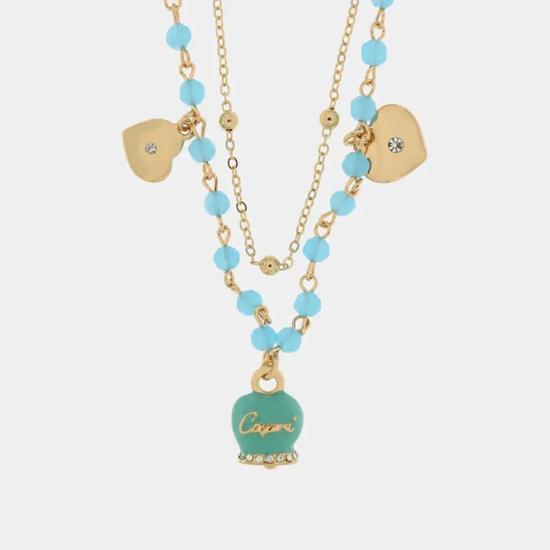 Collana in Metallo con campana smaltata turchese e cuoricini pendenti