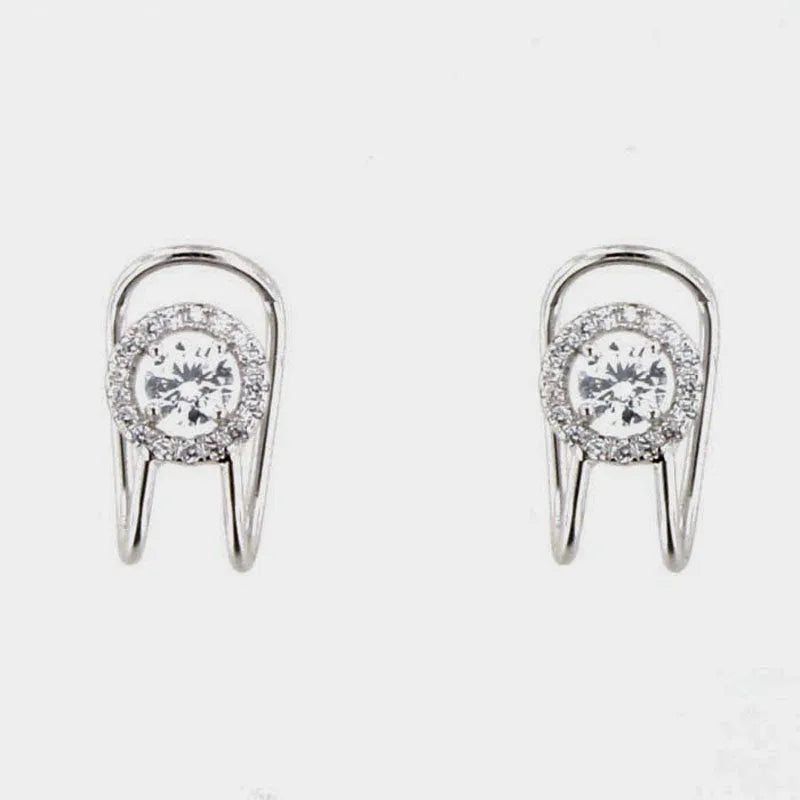 Orecchini in Argento 925 con zircone bianco centrale incorniciato da un giro di zirconi