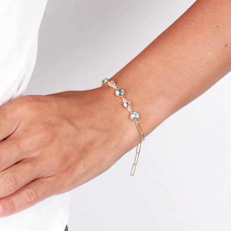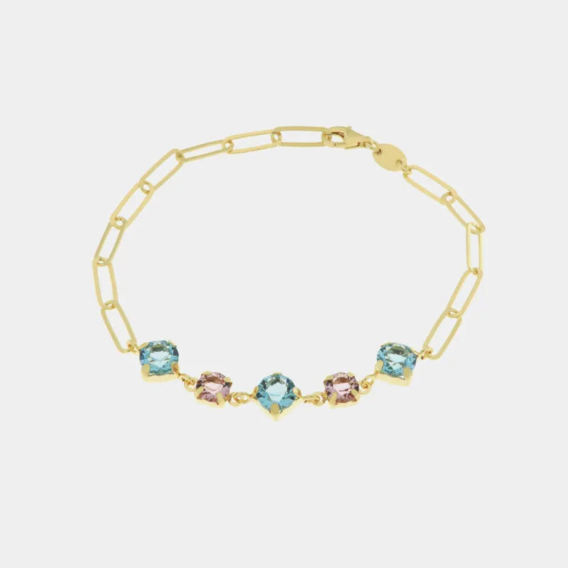 Bracciale in Argento 925 con catene e cristalli nelle sfumature del rosa e celeste