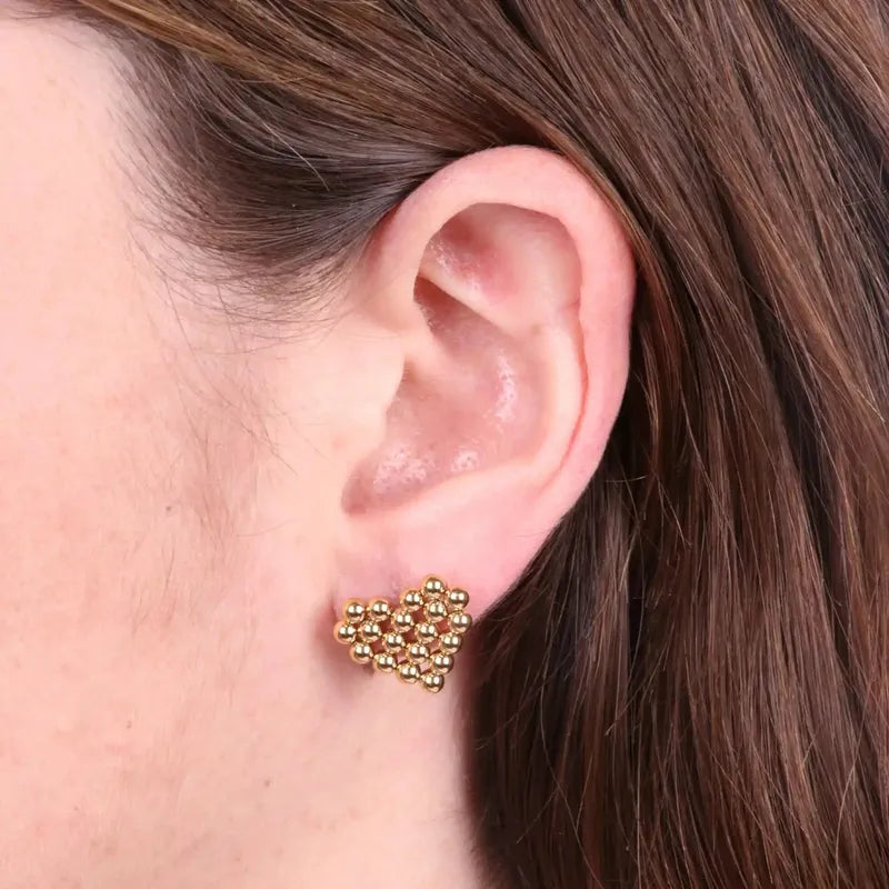 Orecchini in Acciaio con cuore impreziosito da sfere