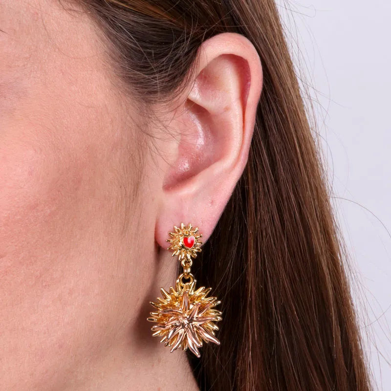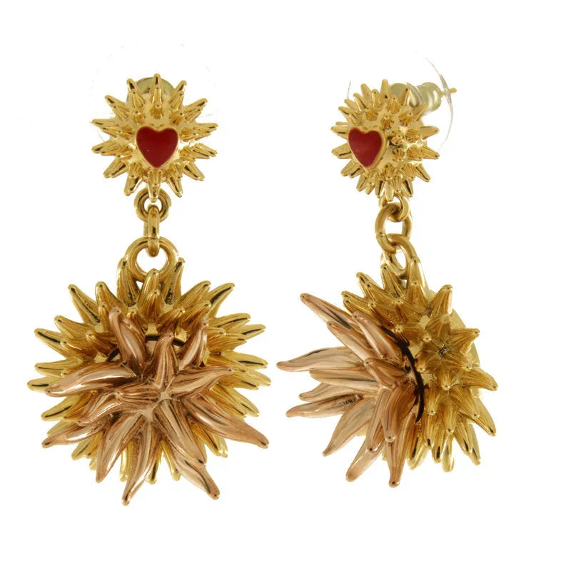 Orecchini in Metallo con cuore e riccio di mare placcato oro