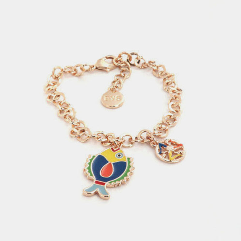 Bracciale in Metallo maglia rolò, con pesciolino pendente impreziosito da smalti colorati