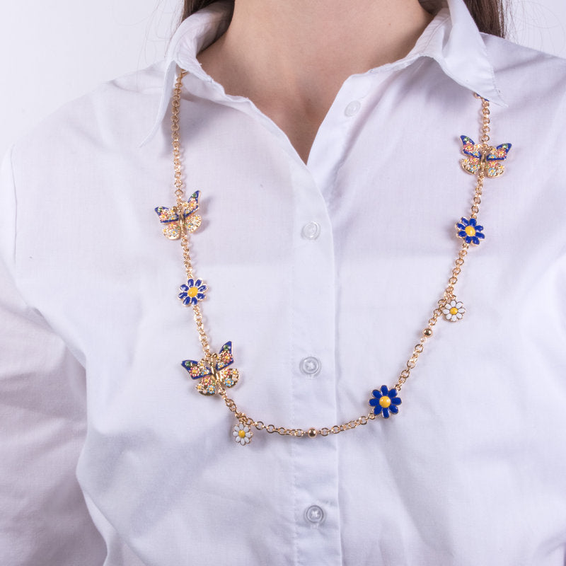 Collana in Metallo con farfalle e fiori blu e bianchi