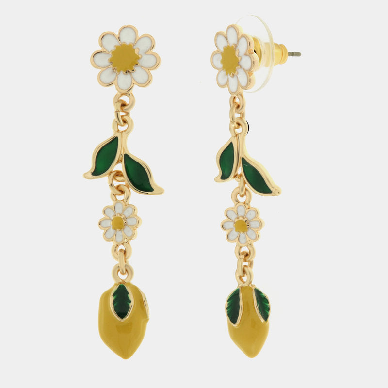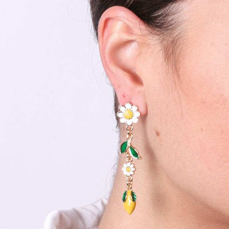 Orecchini in Metallo con margherita al lobo e limoni pendenti
