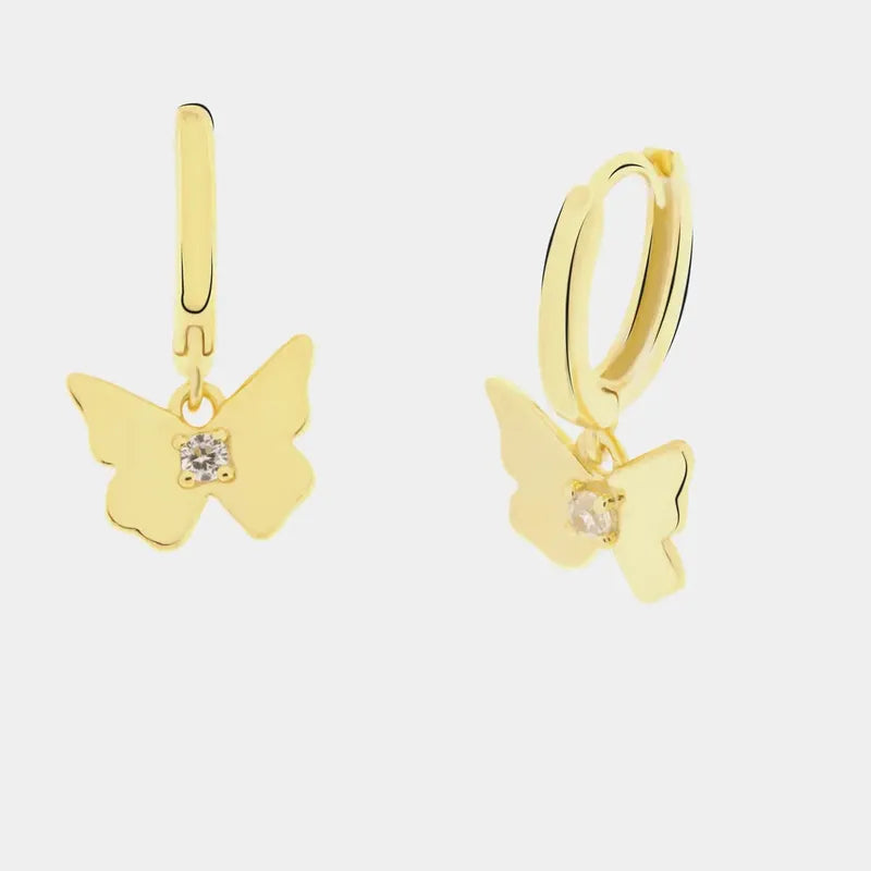 Pendientes de aro de plata 925 con mariposa colgante
