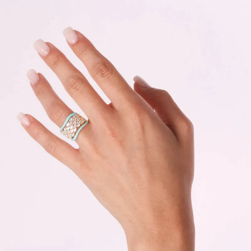 Anello in Argento 925 a fascia con zirconi e smalto verde